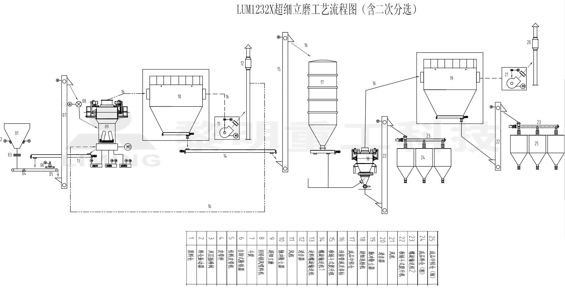 生產(chǎn)該系度范圍的重鈣主要選用超細立磨,LUM系列超細立式磨是黎明重工結(jié)合多年的各種磨機研發(fā)制造經(jīng)驗,以LM系列立式磨為基礎(chǔ),借鑒的德國超細立磨的相關(guān)技術(shù),設(shè)計開發(fā)的科學(xué)性粉磨設(shè)備,是一種一次完成超細粉磨、分級、輸送于一體的超細制粉行業(yè)專用設(shè)備,漆工藝參數(shù)、機械性能及成品質(zhì)量等技術(shù)指標達到標準水平。該機可直接粉磨生產(chǎn)650目的重鈣,通過增加二次分級裝置,可生產(chǎn)1500目的超細重鈣。該機主要應(yīng)用于超細碳酸鈣的粉碎加工,一次成品細度d97=400~1500目(8~38um),單機生產(chǎn)能力依機型不同在8~18T/H,其工藝流程圖看圖。