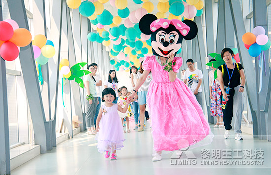沒錯,這就是黎明重工一年一度的親子開放日,“帶著孩子來上班”是黎明向員工發(fā)出的邀請函。近100個小朋友跟隨自己的父母——黎明重工員工一起來到公司,體驗他們暑期里難忘的一天。而平日一絲不茍、沉穩(wěn)干練的員工,也轉(zhuǎn)變角色,化身暖心的父母,陪著孩子將這一天過成幸福的樣子。
