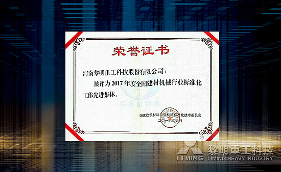 黎明重工榮獲2017年度全國(guó)建材機(jī)械行業(yè)標(biāo)準(zhǔn)化工作集體